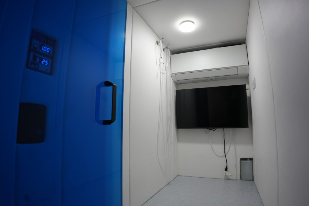 酸素ボックスで、キレイと元気をチャージ。1.32気圧・高濃度の酸素環境で、体の内側からリフレッシュ&コンディショニング。疲労回復はもちろん、集中力アップや美容ケアにも嬉しいサポートをしてくれます。トレーニング後のご褒美タイムとして、是非お楽しみ下さい。